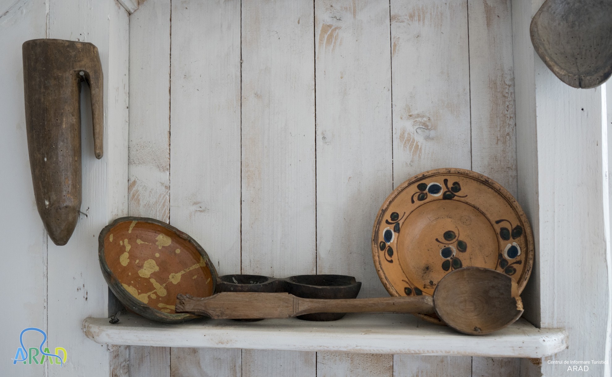 Lucrările de artă, în cea mai mare parte pictura, expuse în salon, atelier şi în hol sunt realizate de Eugen Popa în perioada 1940–1980. Portretul soţiei, cele ale părinţilor, casa veche părintească, o serie de autoportrete cu pălărie stil Rembrandt, vin să însufleţească şi să (re)compună o atmosferă familială. Podul casei, complet şi modern renovat, este o mansardă nedelimitată prin pereţi, unde predomină lucrările pictorului, majoritatea din anii 80 şi până în 1995. Alături de naturi moarte, peisaje din Săvârşin sau de la Otopeni, cicluri de desene (Portretul, Nudul, Zbor, Structuri vegetale), aici pot fi văzute lucrări semnate de Jean Al. Steriadi, Corneliu Baba, George Apostu, Ion Gheorghiu şi diferite obiecte de artă decorativă din Extremul Orient, colecţionate între anii 1960 şi 1962, perioada pe care au petrecut–o în sudul Chinei.