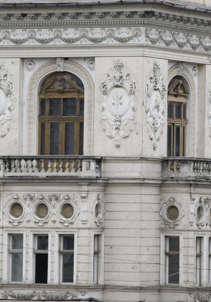 A fost ridicat la sfârșitul secolului XIX în stil eclectic, servind inițial drept reședință pentru familia marelui industriaș arădean Neumann. Proiectantul a introdus în compoziția fațadei elemente ale stilului renașterii, varianta florentină, păstrate până astăzi la nivelul etajelor. Menționăm în primul rând balcoanele de la etajul al doilea de pe fațada dinspre bulevardul Revoluției, străjuită de arcade.